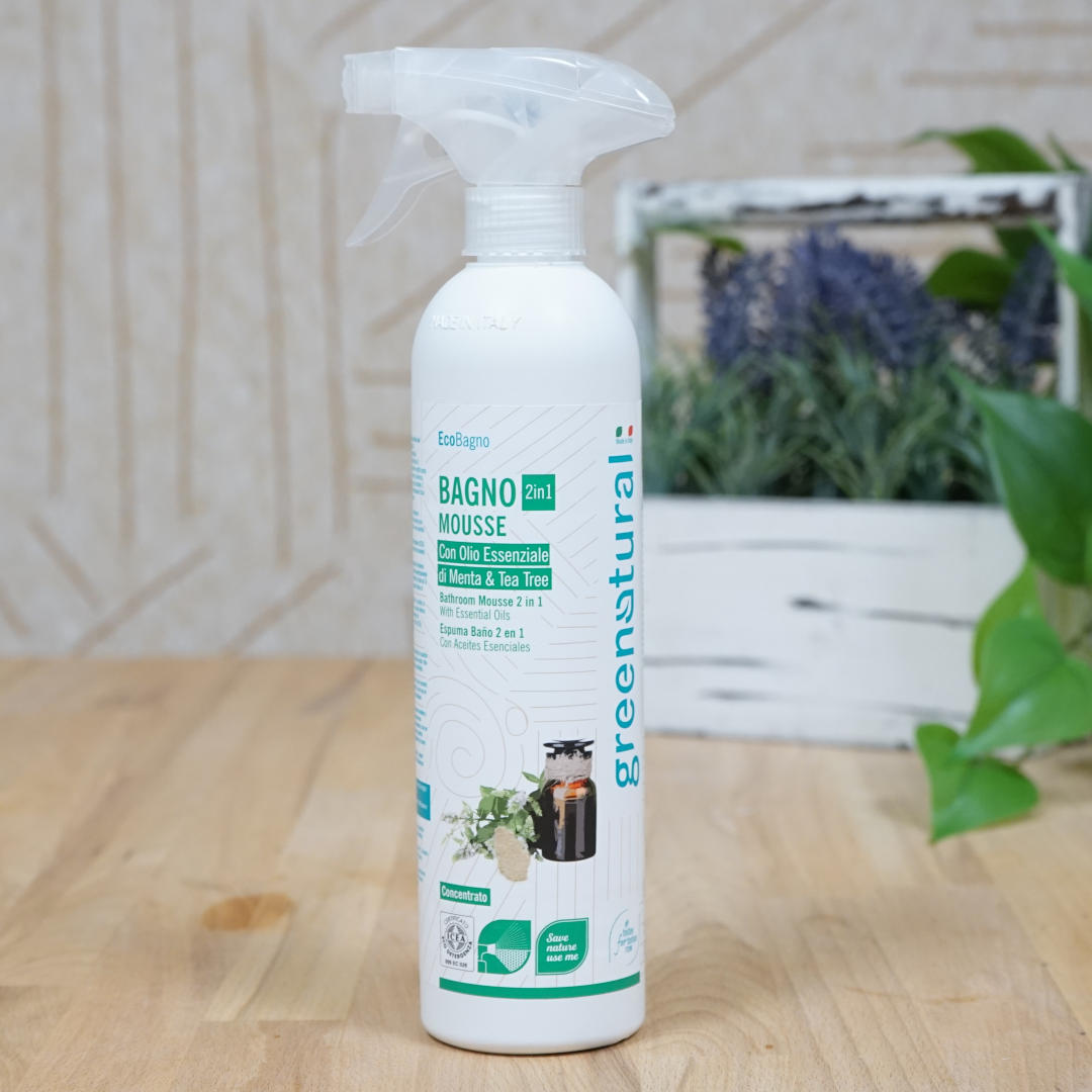 Greenatural’s Bathroom Mousse is the ideal product for bathroom cleaning. It performs an excellent cleaning and anti-scale action leaving your bathroom clean and perfumed thanks to the use of Mint and Tea Tree essential oils.