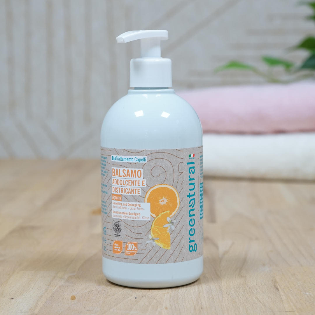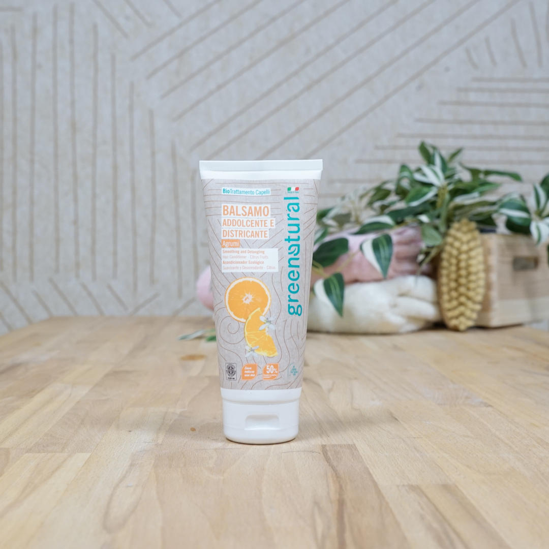 The ECOBIO Greenatural Citrus conditioner gently detangles stressed hair, leaving it soft and light.